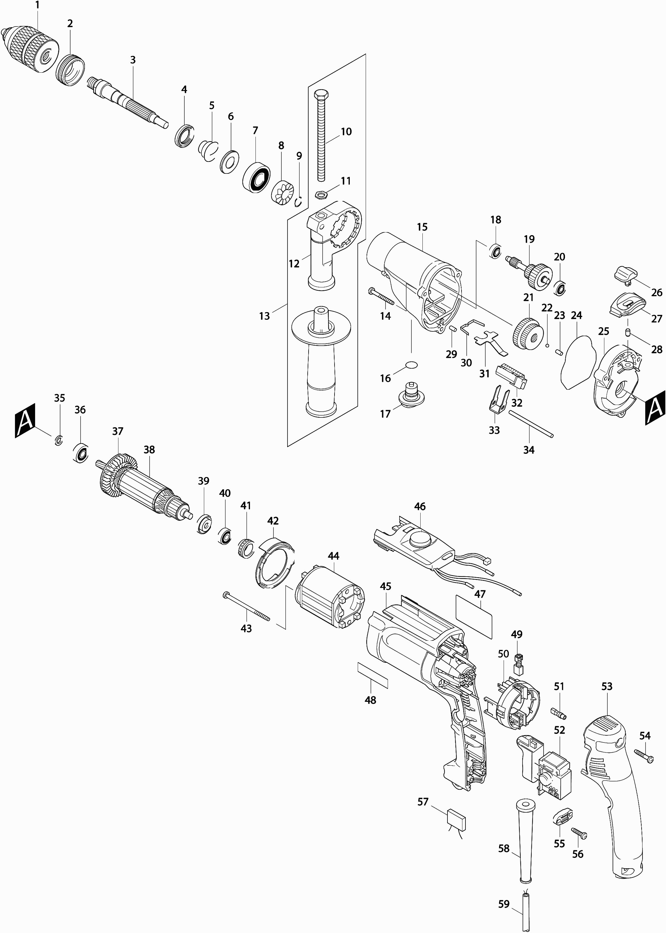 Zeichnungen der Makita HP2071