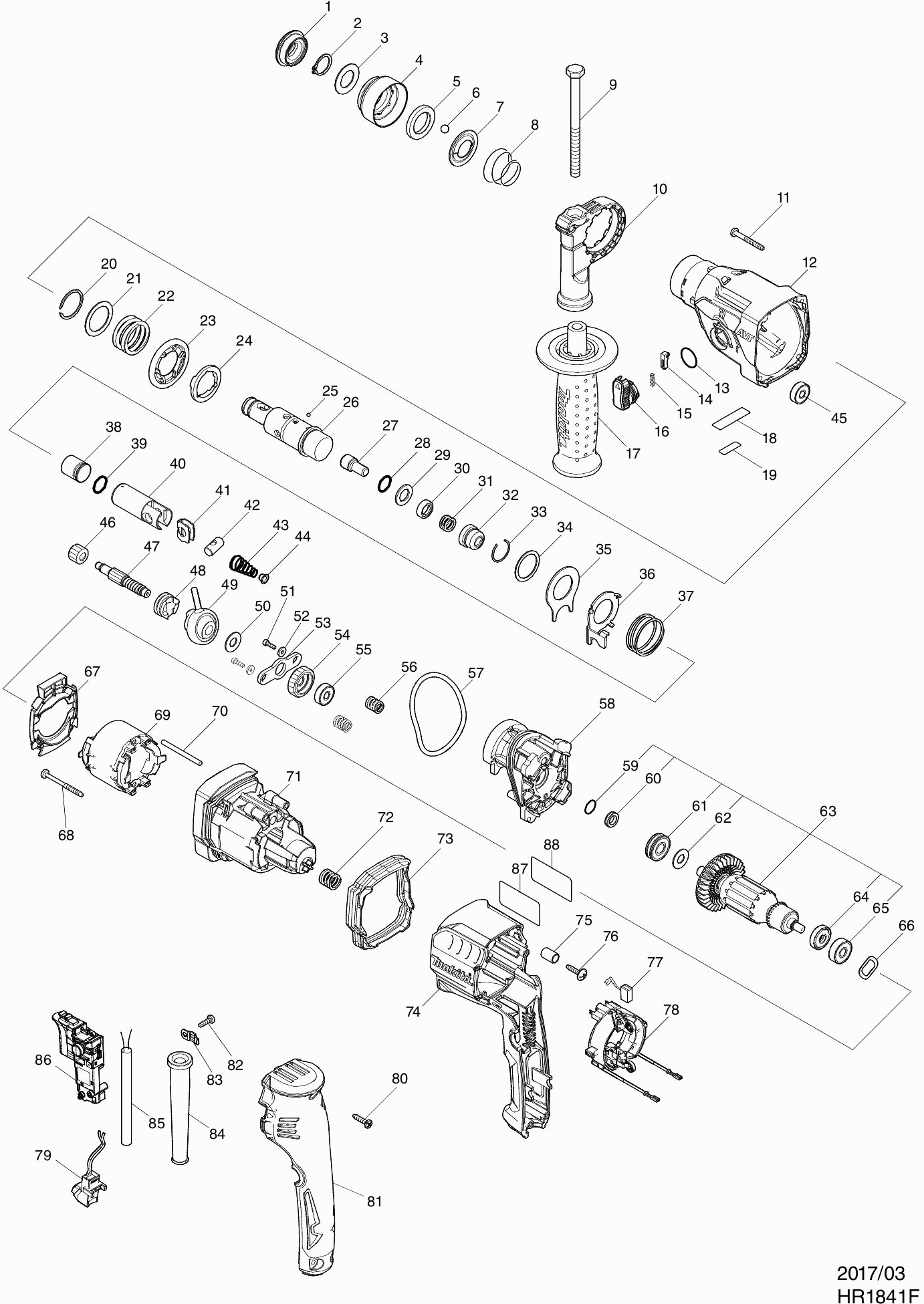 Teileliste der Makita HR1841F