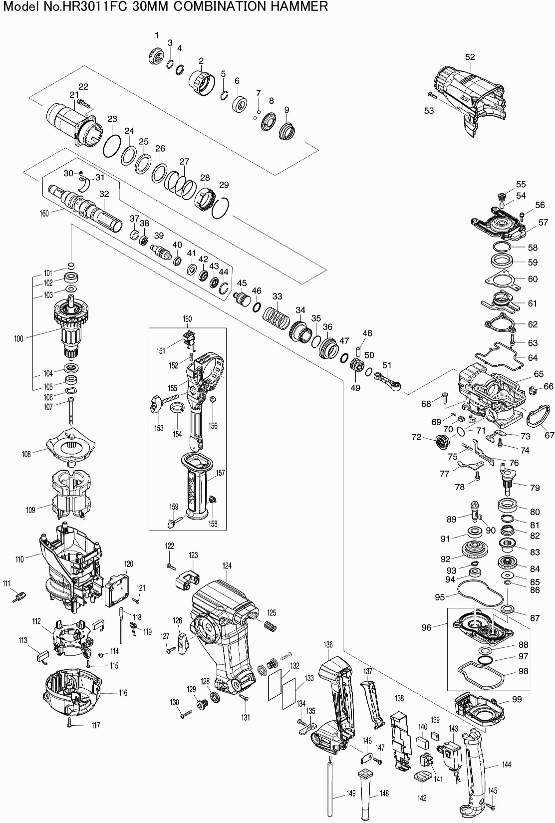 Zeichnungen der Makita HR3011FC