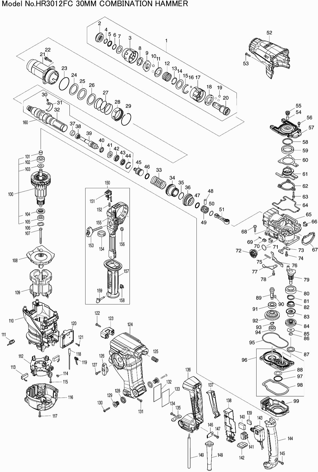 Teileliste der Makita HR3012FC