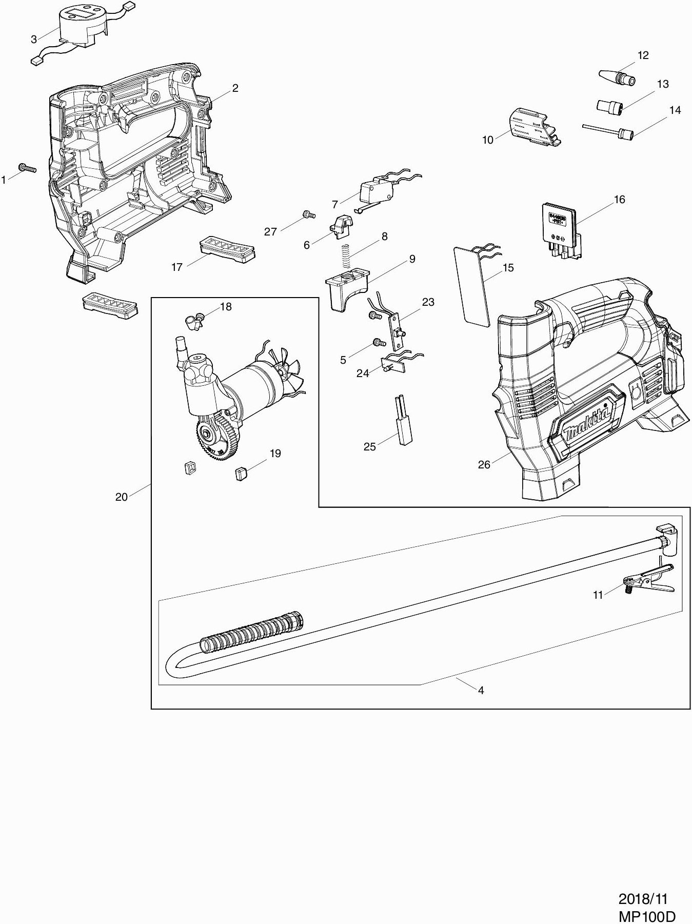 Hier finden Sie alle verfügbaren Teile und Zeichnungen der 'Makita MP100D'. Von hier aus können Sie alle gewünschten Teile direkt bestellen. Viele Teile müssen je nach Marke beim Hersteller bestellt werden, dies dauert ein bis vier Wochen. Alle Informationen, die wir haben, befinden sich auf unserer Website. Wir können Sie nicht beraten, was Sie benötigen. Dazu müssen Sie die Maschine zur Reparatur zurücksenden. Bitte beachten Sie bei der Bestellung Folgendes: