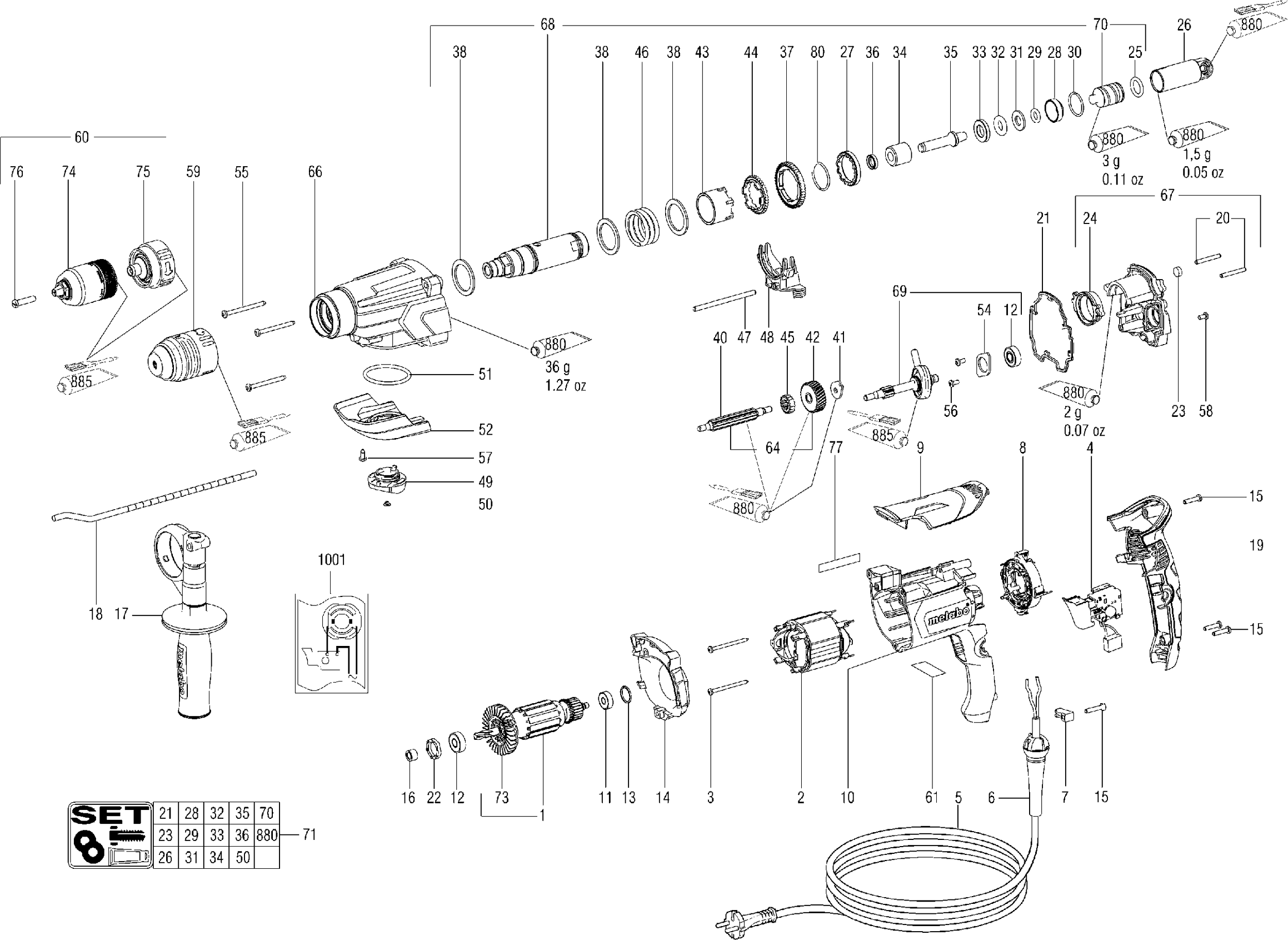 Teileliste der Metabo 00878000 ( KHE2860QUICK )