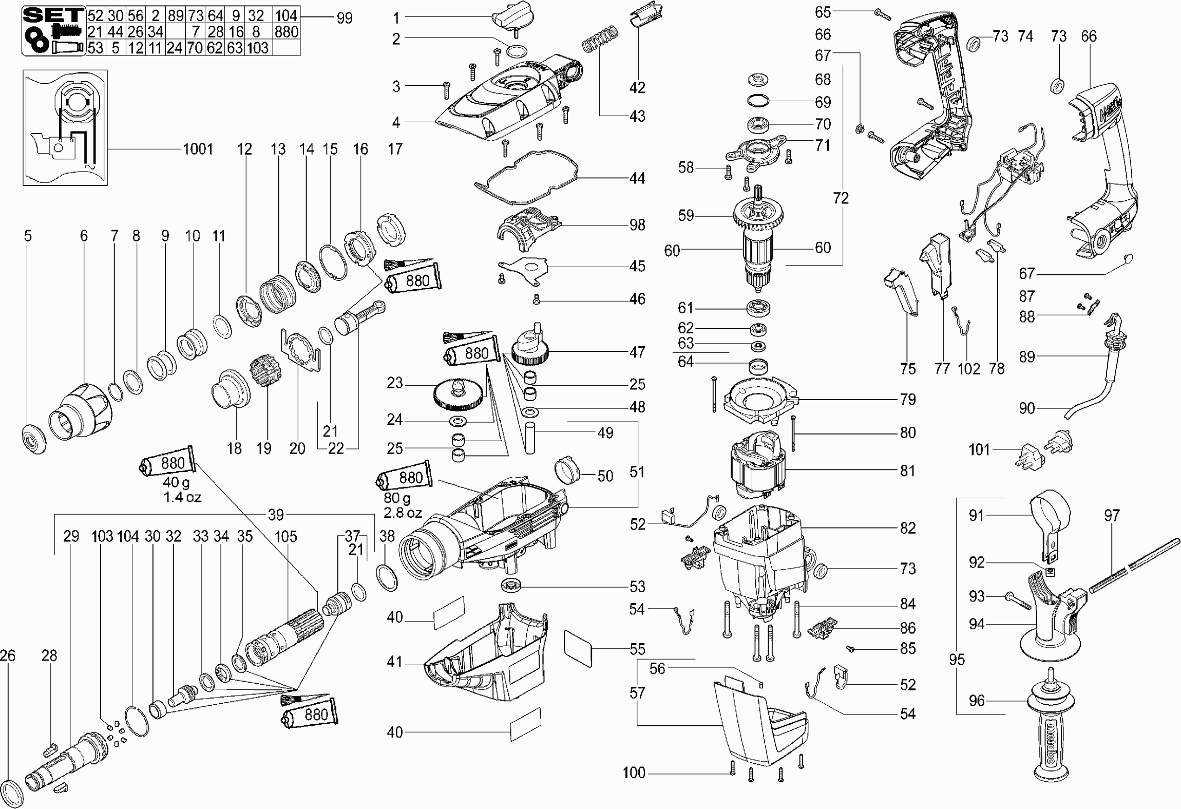Teileliste der Metabo 00340001 ( KHE56 )