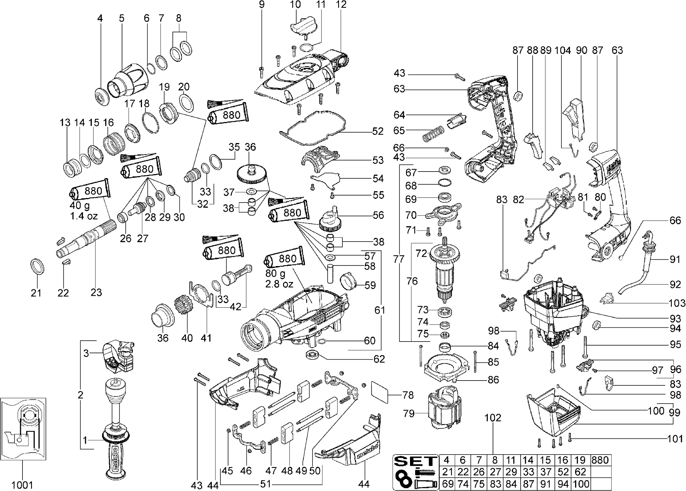 Hier finden Sie alle verfügbaren Teile und Zeichnungen der 'Metabo 00341000 ( KHE76 )'. Von hier aus können Sie alle gewünschten Teile direkt bestellen. Viele Teile müssen je nach Marke beim Hersteller bestellt werden, dies dauert ein bis vier Wochen. Alle Informationen, die wir haben, befinden sich auf unserer Website. Wir können Sie nicht beraten, was Sie benötigen. Dazu müssen Sie die Maschine zur Reparatur zurücksenden. Bitte beachten Sie bei der Bestellung Folgendes: