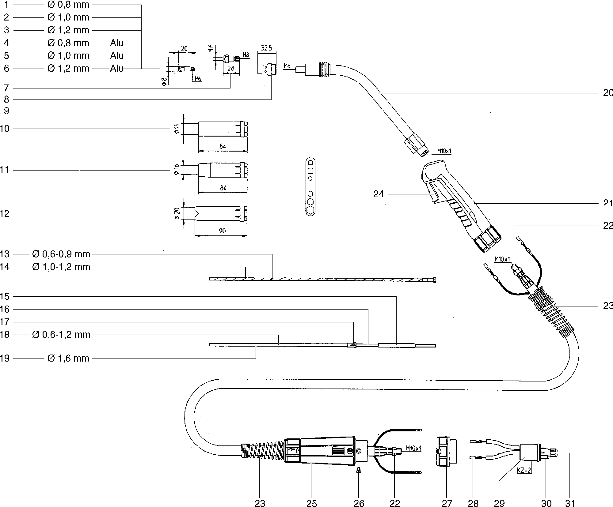 Teileliste der Metabo 0902008438-10 ( MIG-MAGWELDINGTORCHSB36-5KZ2 )