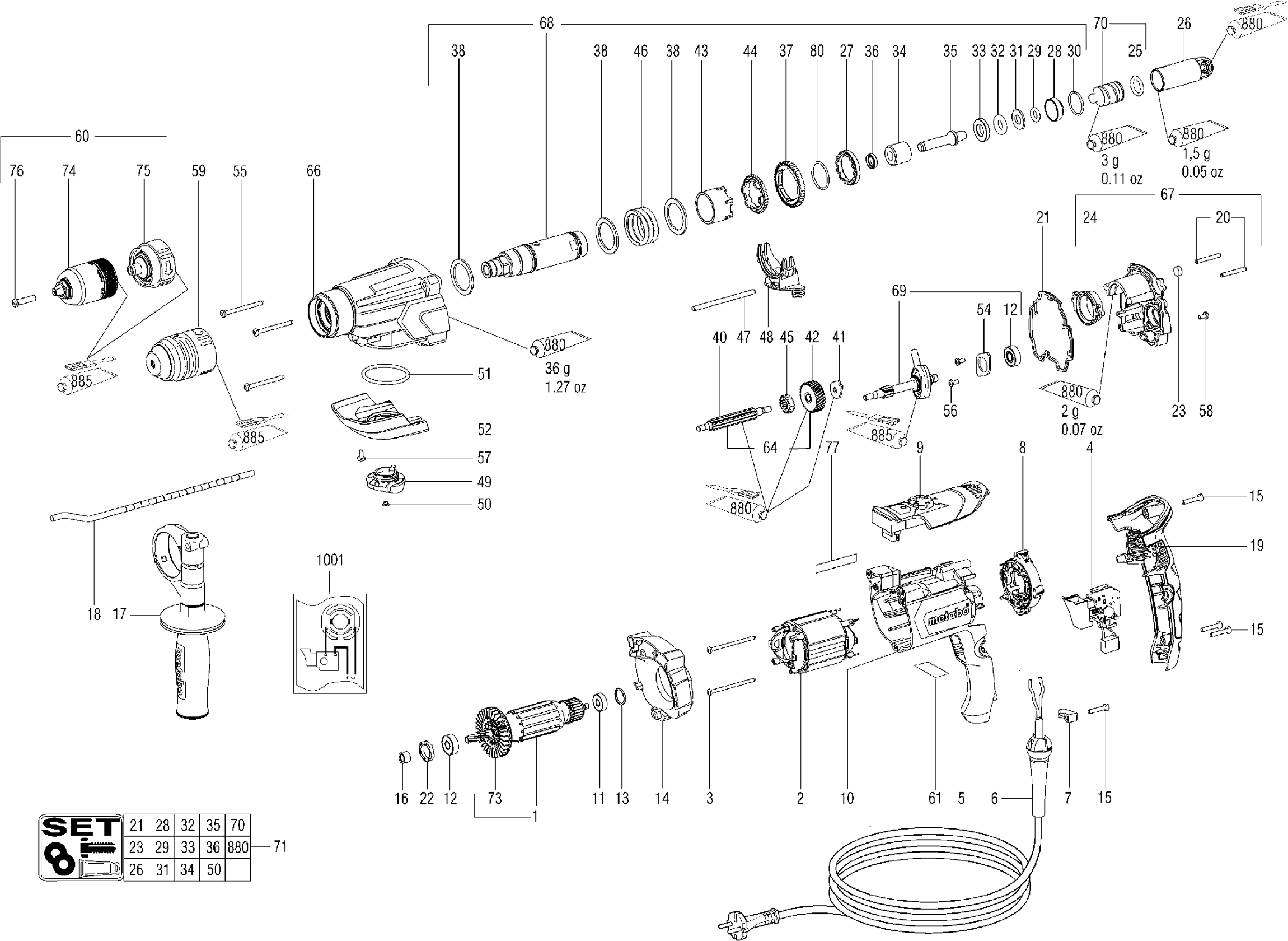 Teileliste der Metabo 00713000 ( UHEV2860-2QUICK )