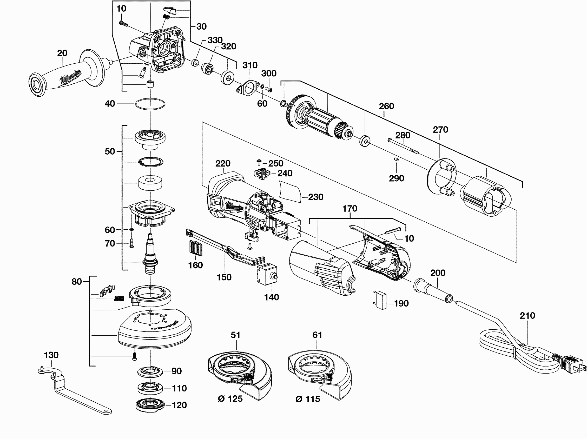 Zeichnungen der Milwaukee 4000416141 ( AG11-125X )