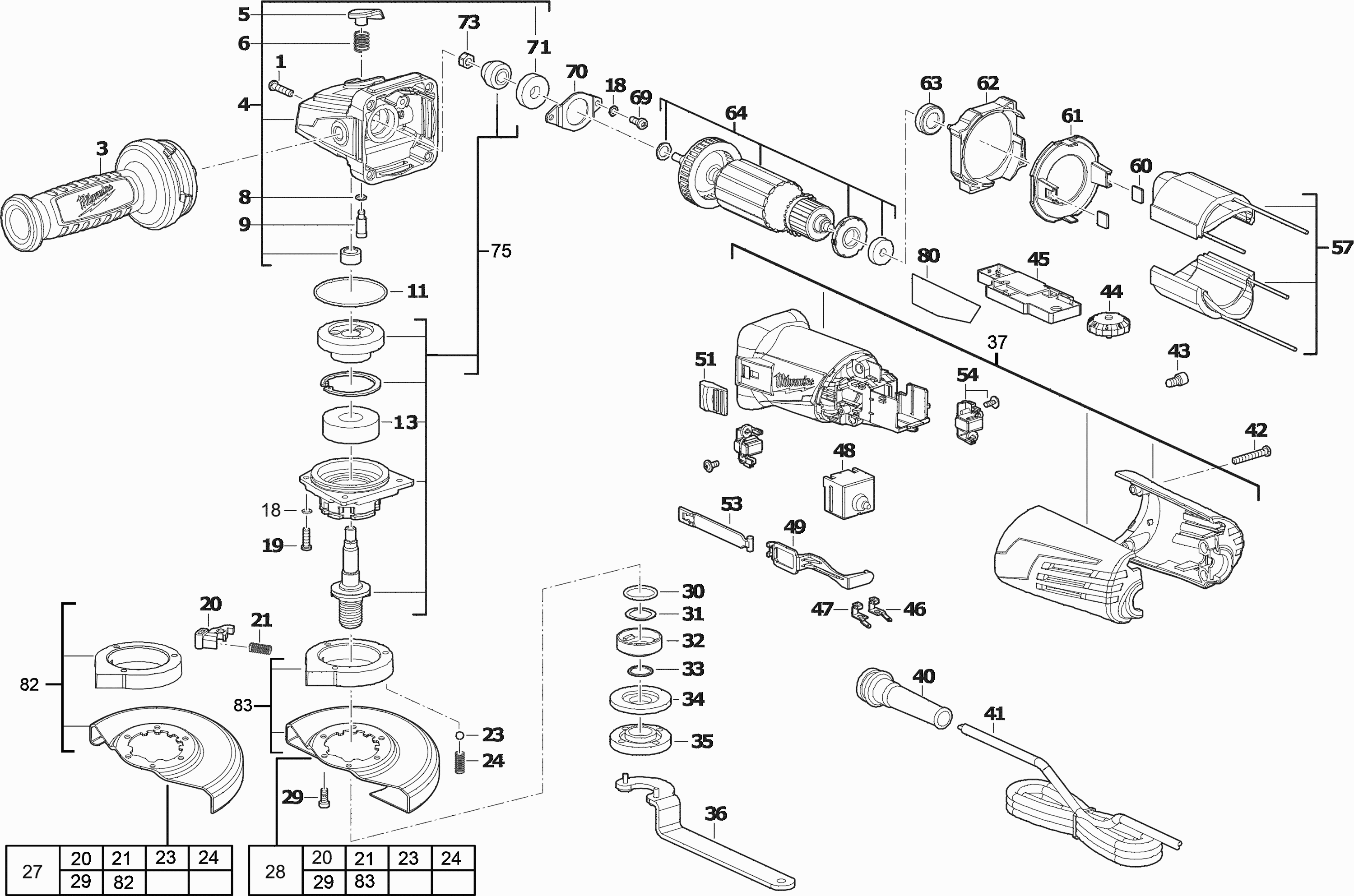 Teileliste der Milwaukee 4000458480 ( AGV13-125XE )