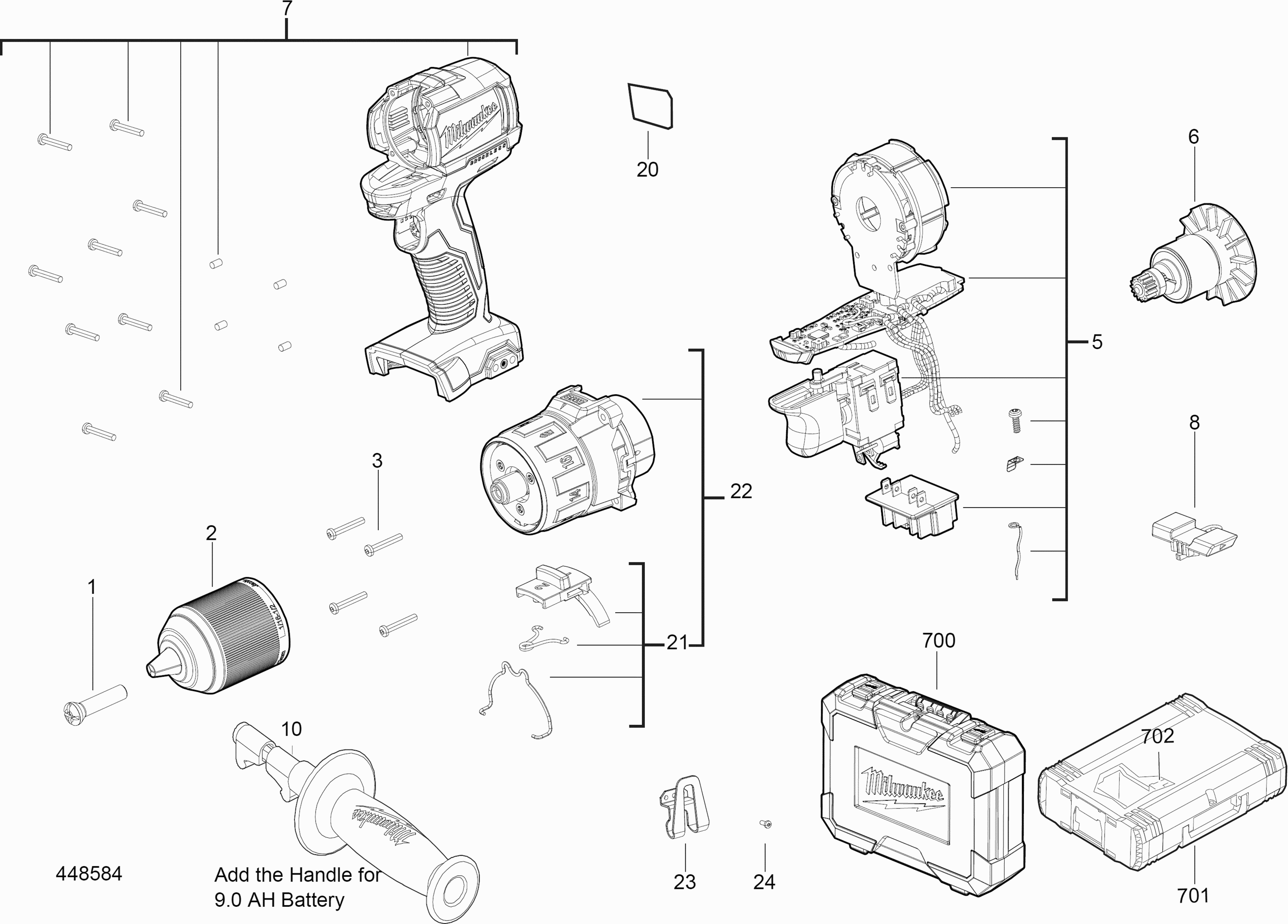 Teileliste der Milwaukee 4000448580 ( M18BLDD-0 )
