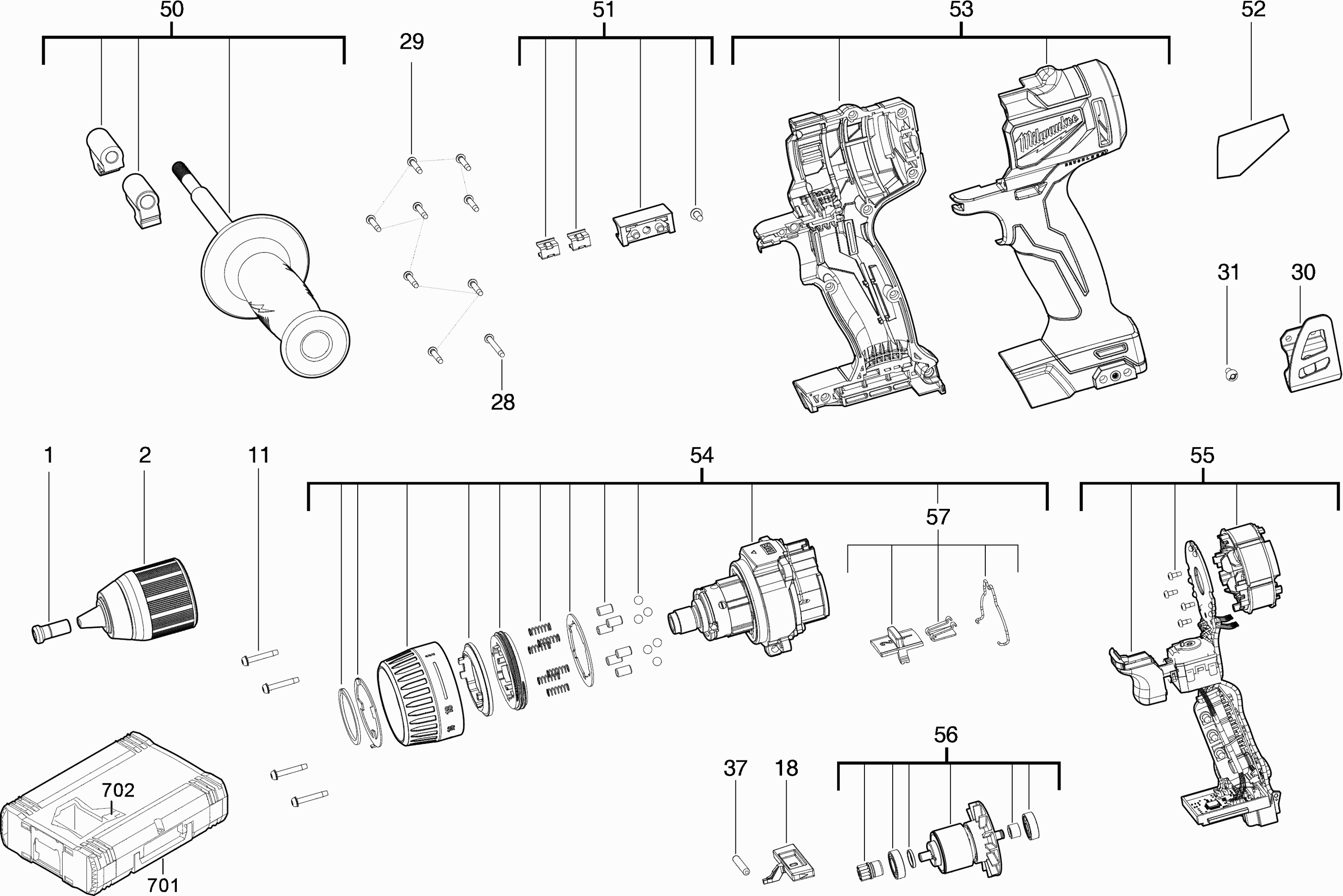 Teileliste der Milwaukee 4000469161 ( M18BLDD2-0X )