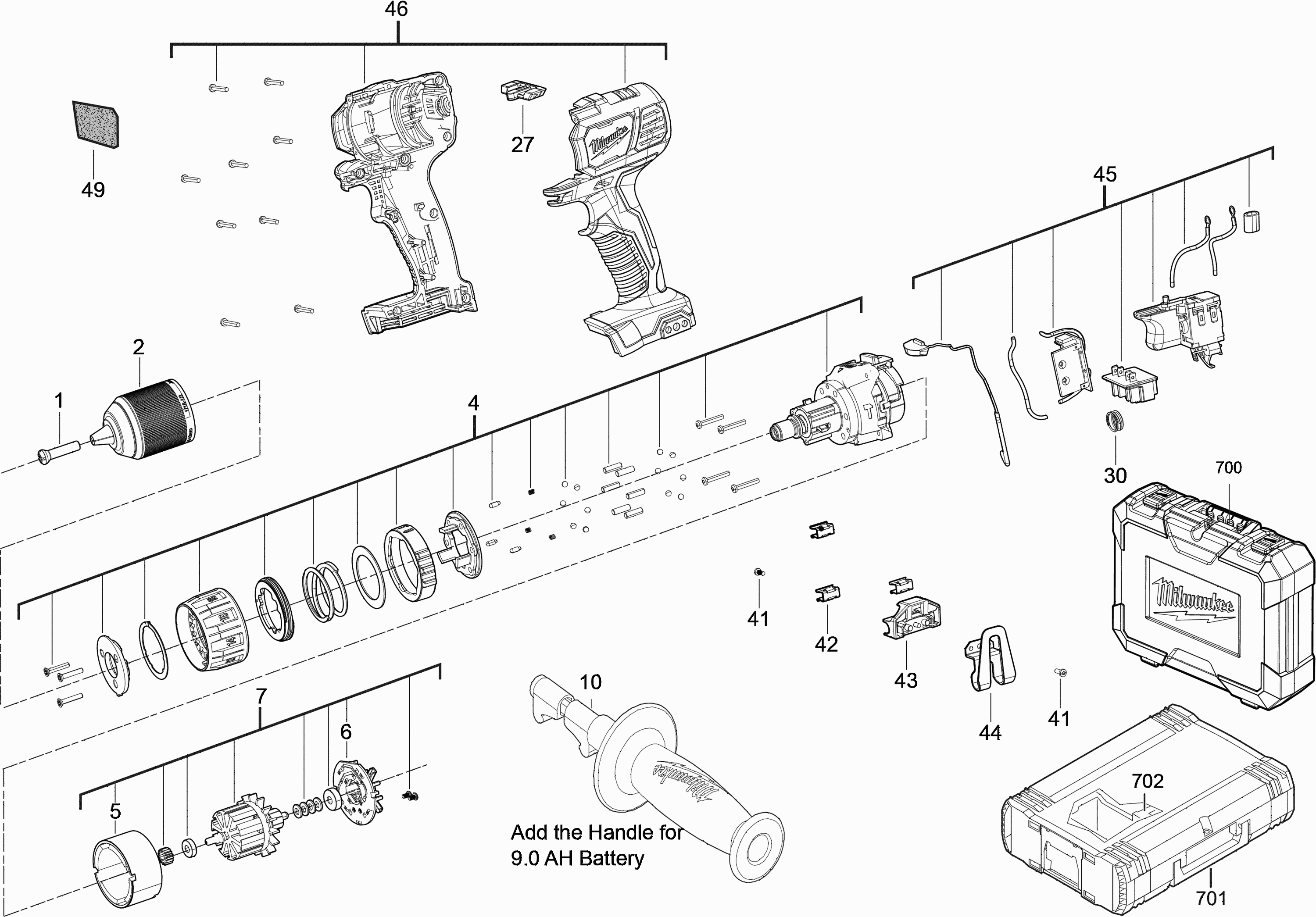Hier finden Sie alle verfügbaren Teile und Zeichnungen der 'Milwaukee 4000458658 ( M18BPDN-402C )'. Von hier aus können Sie alle gewünschten Teile direkt bestellen. Viele Teile müssen je nach Marke beim Hersteller bestellt werden, dies dauert ein bis vier Wochen. Alle Informationen, die wir haben, befinden sich auf unserer Website. Wir können Sie nicht beraten, was Sie benötigen. Dazu müssen Sie die Maschine zur Reparatur zurücksenden. Bitte beachten Sie bei der Bestellung Folgendes: