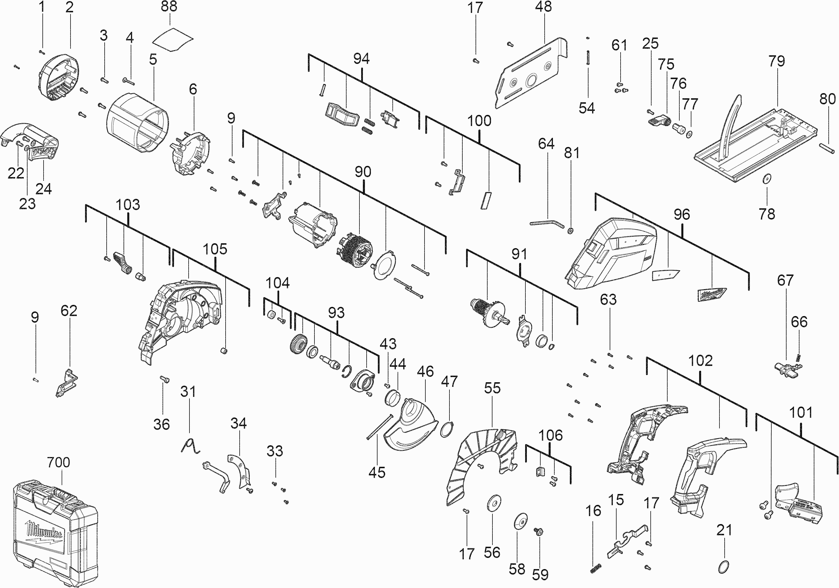 Hier finden Sie alle verfügbaren Teile und Zeichnungen der 'Milwaukee 4000477063 ( M18FMCS66-0C )'. Von hier aus können Sie alle gewünschten Teile direkt bestellen. Viele Teile müssen je nach Marke beim Hersteller bestellt werden, dies dauert ein bis vier Wochen. Alle Informationen, die wir haben, befinden sich auf unserer Website. Wir können Sie nicht beraten, was Sie benötigen. Dazu müssen Sie die Maschine zur Reparatur zurücksenden. Bitte beachten Sie bei der Bestellung Folgendes: