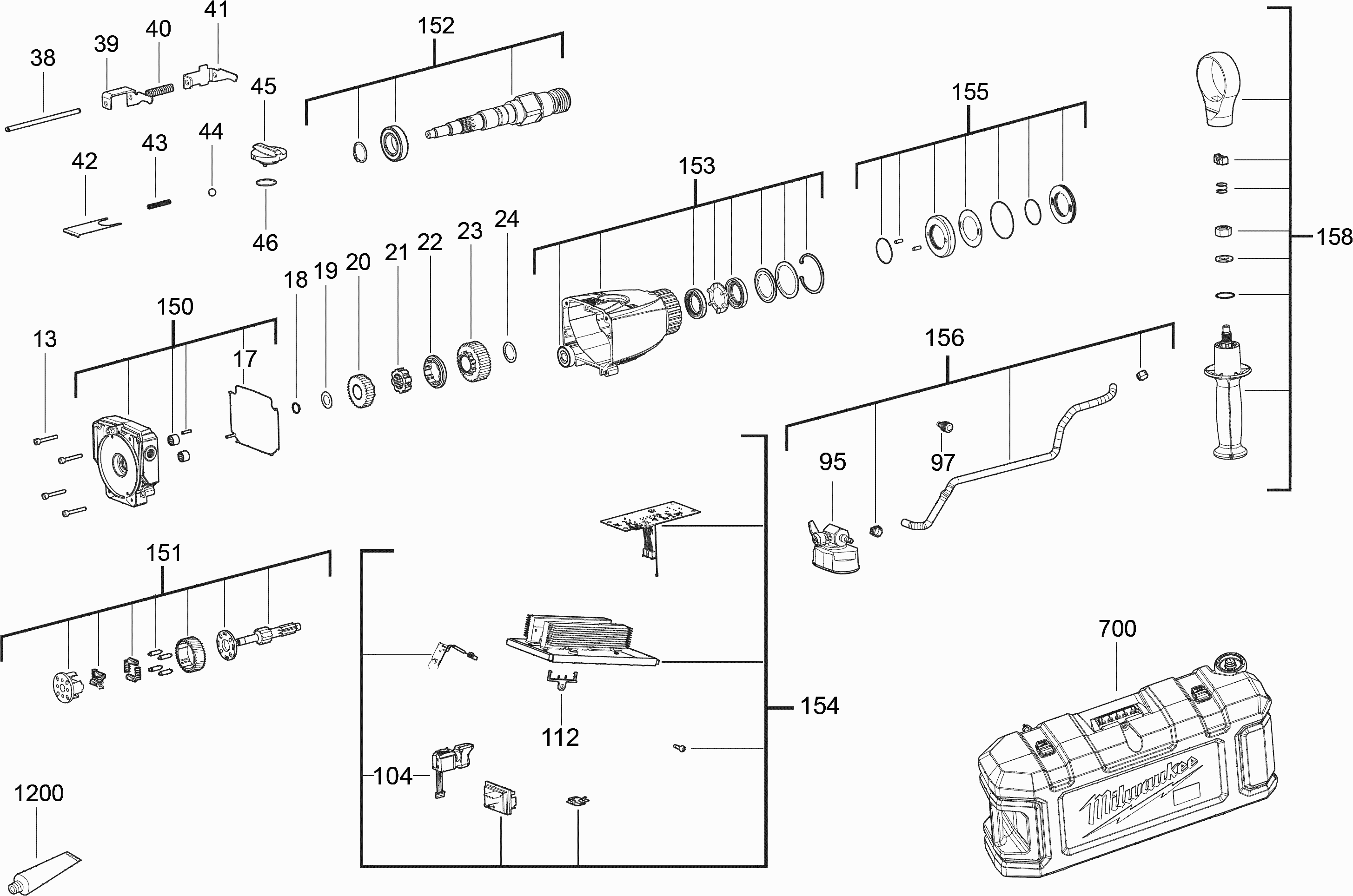 Hier finden Sie alle verfügbaren Teile und Zeichnungen der 'Milwaukee 4000474605 ( MXFDCD150-0C )'. Von hier aus können Sie alle gewünschten Teile direkt bestellen. Viele Teile müssen je nach Marke beim Hersteller bestellt werden, dies dauert ein bis vier Wochen. Alle Informationen, die wir haben, befinden sich auf unserer Website. Wir können Sie nicht beraten, was Sie benötigen. Dazu müssen Sie die Maschine zur Reparatur zurücksenden. Bitte beachten Sie bei der Bestellung Folgendes: